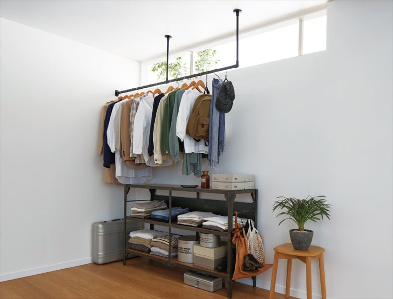 洋服も吊るして便利。さらに「見せる収納」としても使えます
