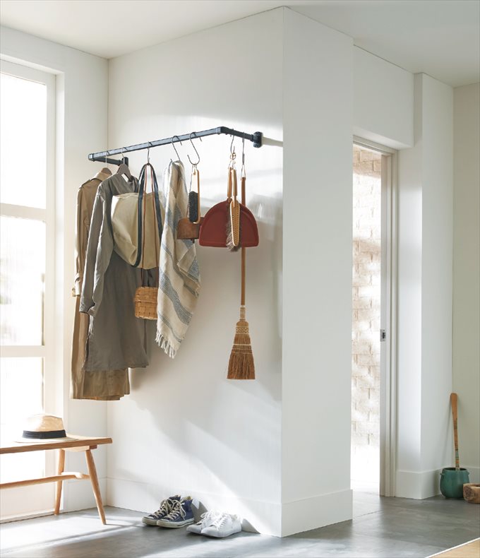 玄関に設置すれば、外出先でついた花粉やホコリを室内に持ち込まず玄関に掛けておけます。