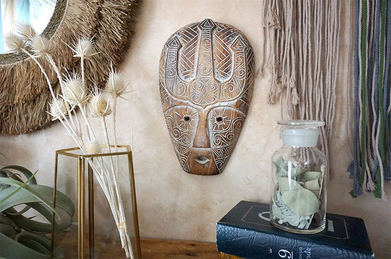 バリ島で職人が一つひとつ手作業で作成しているウォールデコレーション<ボーホーデコマスク>