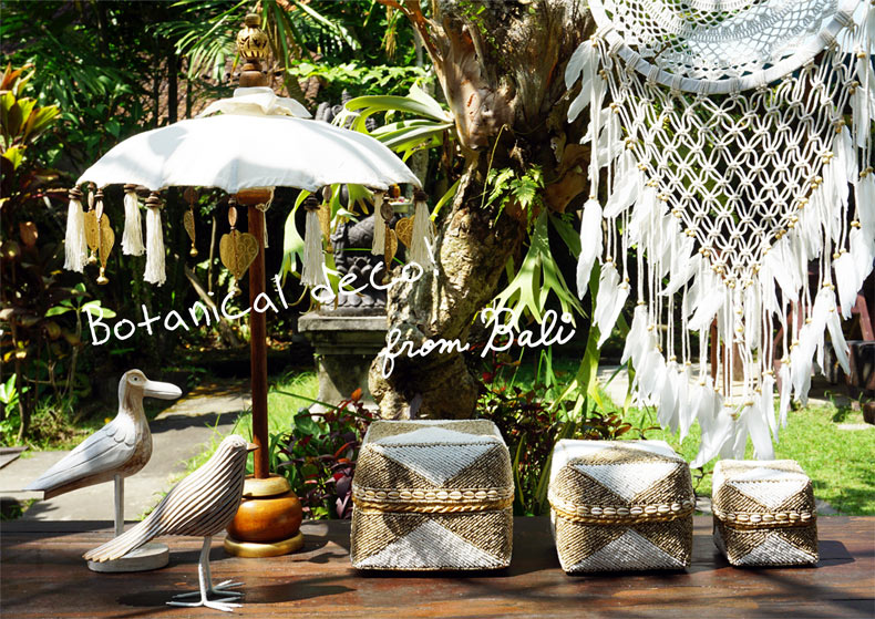 植物やマクラメの雑貨、他バリから仕入れているアイテムとの相性がとても良いので、グリーンたっぷりのボタニカルスタイルや、エスニックな要素がつまったBOHOスタイルのコーディネートのアクセントにおすすめです。