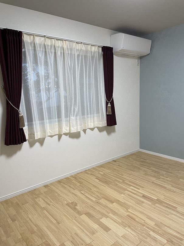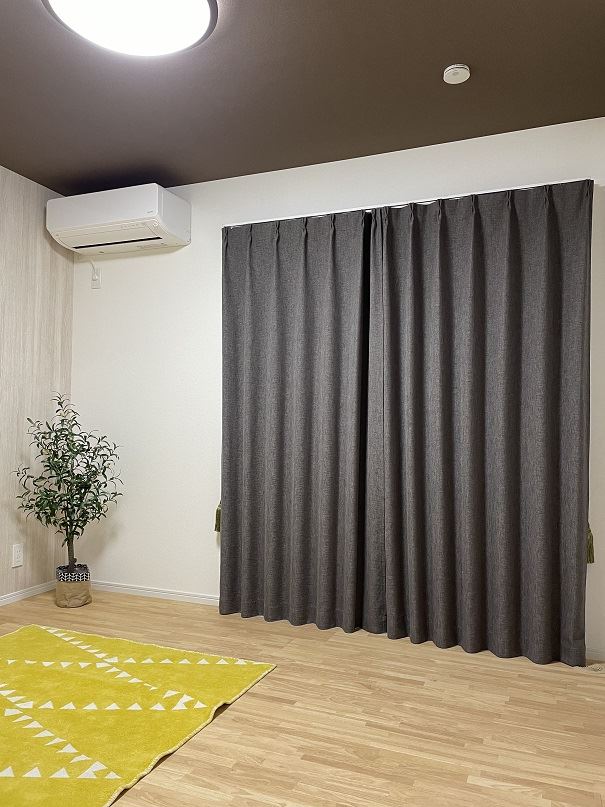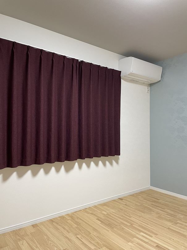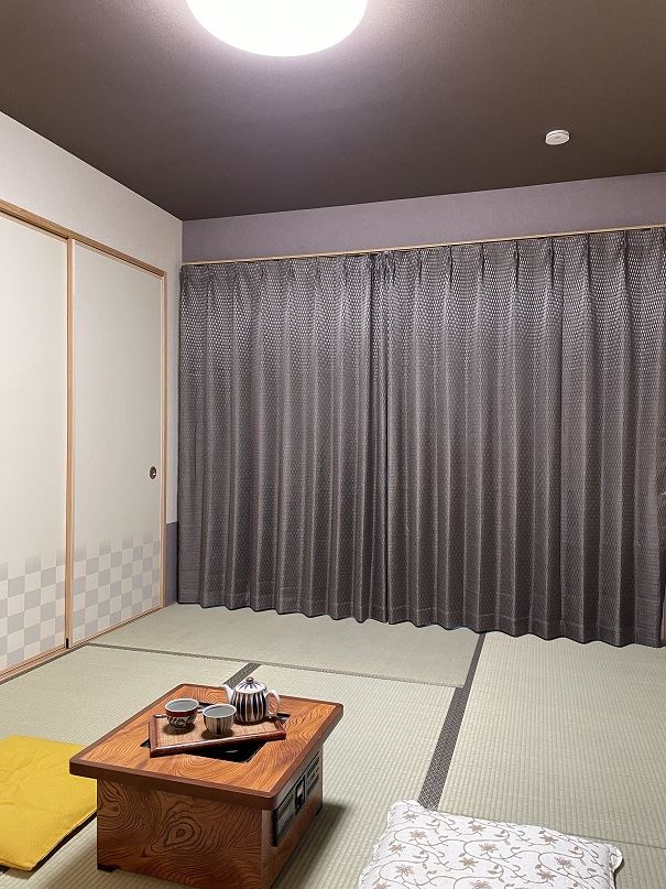 こちら今回カーテンで和モダンにまとめていただき、開閉面でも楽にご対応いただけますし、デザインも和室にとても馴染んでおり素敵なお部屋に仕上がっております。