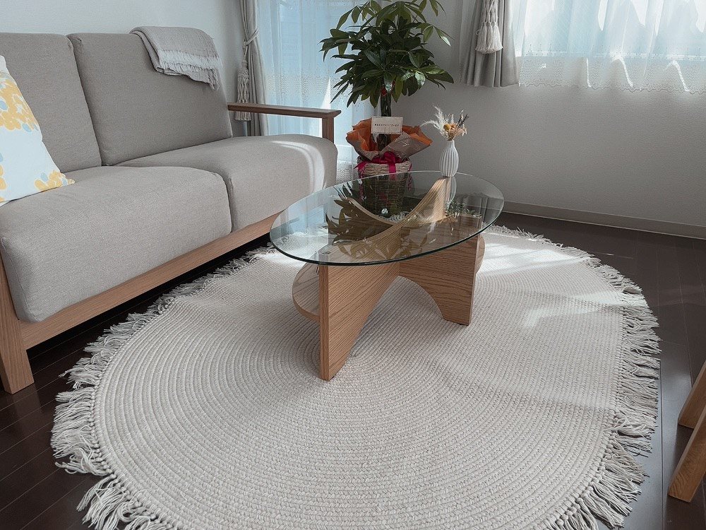 ラグ:お部屋が明るくなり、楕円形の形とテーブルが合っていてすごく気に入っています!