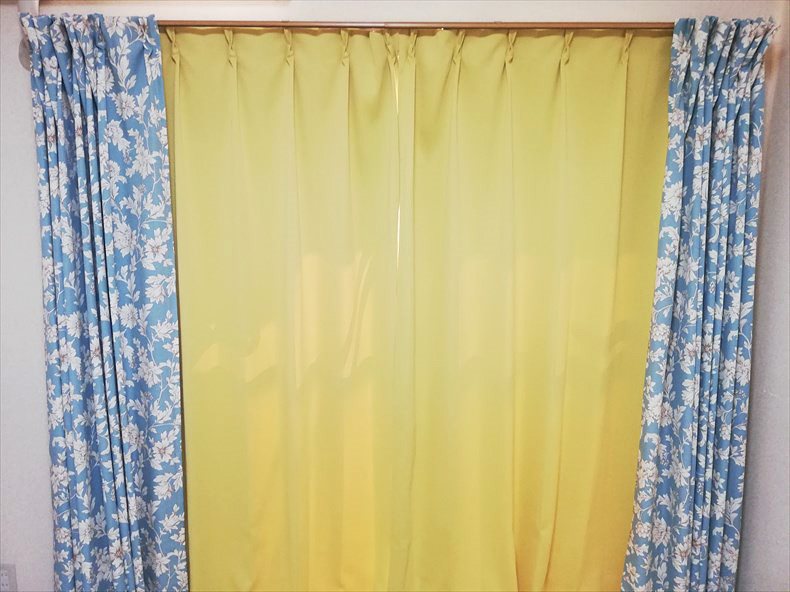 花柄のカーテンが2級遮光だったので、後ろに無地の1級遮光を付けました。
