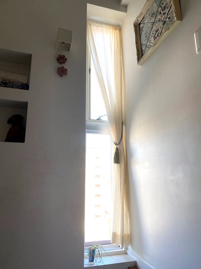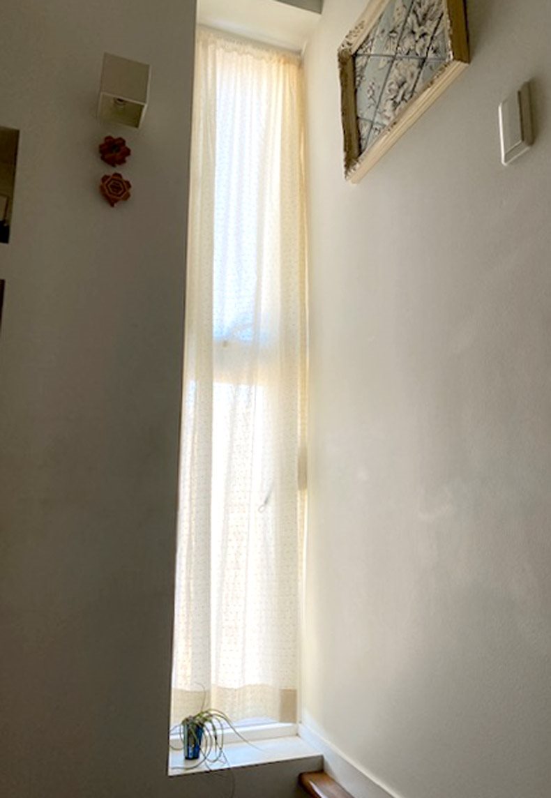 階段脇の明かり取り窓で、横が40cm弱に対して縦が200cm以上と既製品ではあり得ないサイズなので、