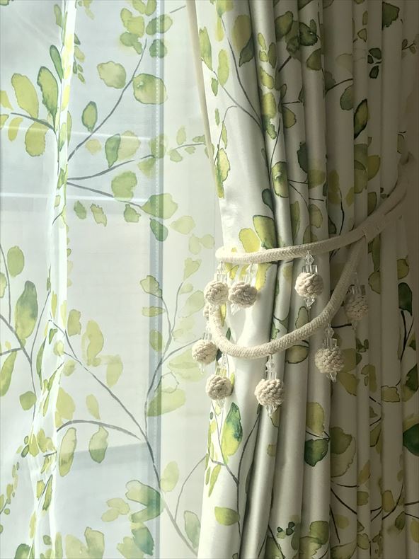 カーテンと同じ生地でシェードカーテンの作製をお願いし、可愛いタッセルも購入しました。