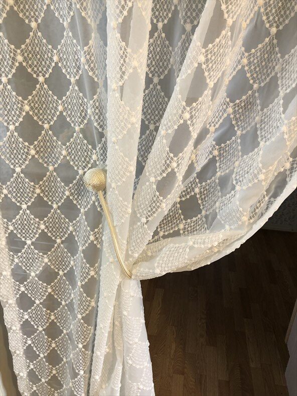 玄関から洗面所が見えるため目隠しカーテンを付けたく、ずっと在庫切れになっていた一目惚れのトルコ刺繍レースカーテンが入荷されていたので即購入いたしました。
