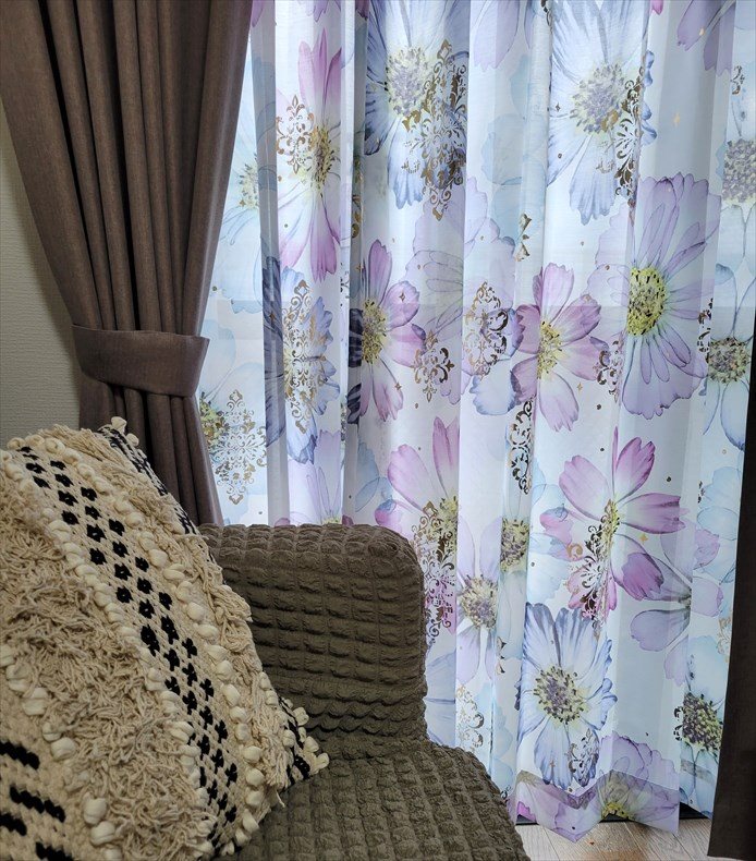 実物の色味や透け感が素敵で、日の当たり具合などでまた違ったニュアンスに見えおうち時間がとてもワクワクするものになりました。