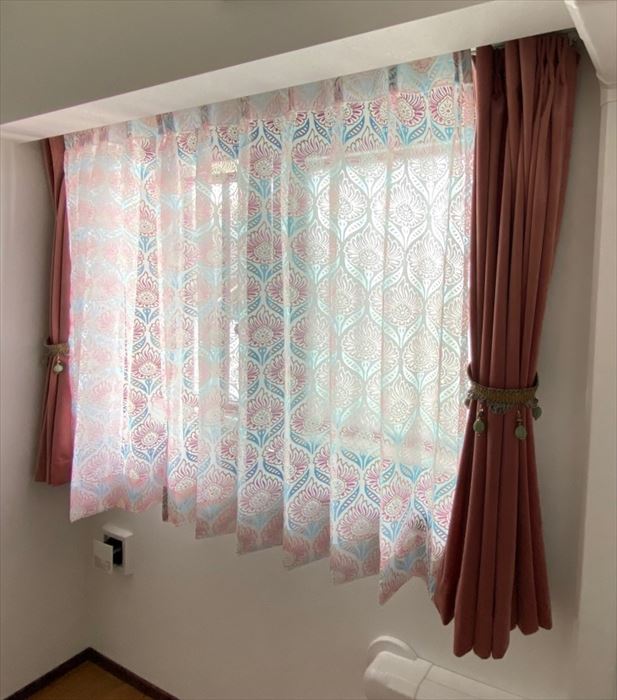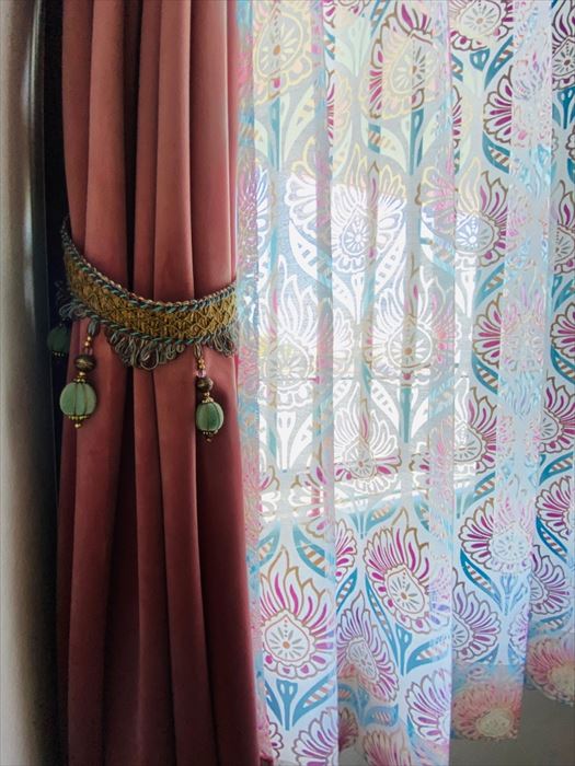 ドレープカーテンの優しい色使いが、トルコ刺繍のデザインを引き立てていますね♪