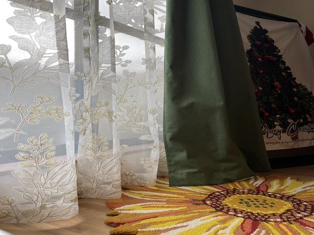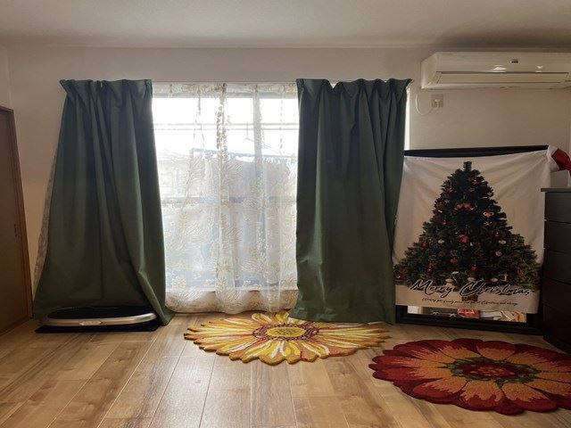 季節感を感じるお写真で、ちょうどクリスマスツリーのタペストリーとカーテンのお色が合っていて素敵ですヽ(´∀*)ノ.+゚