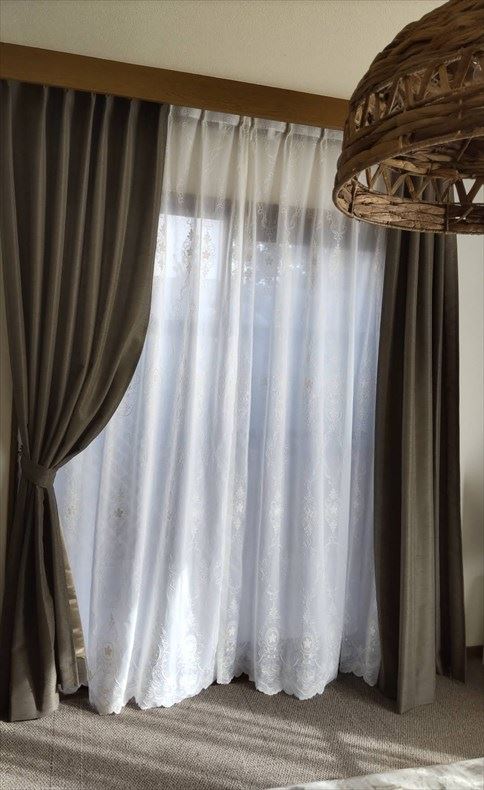 トルコ刺繍のレースカーテンとシャンタン織りの非遮光カーテンを購入しました。