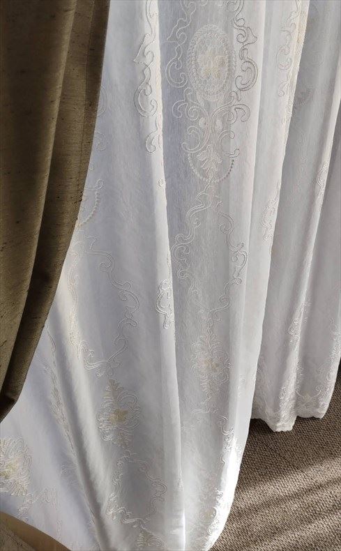 合わせていただいております<シャビーエンブレム>は当店でも人気の高いオリジナルのトルコ刺繡レースカーテンです!