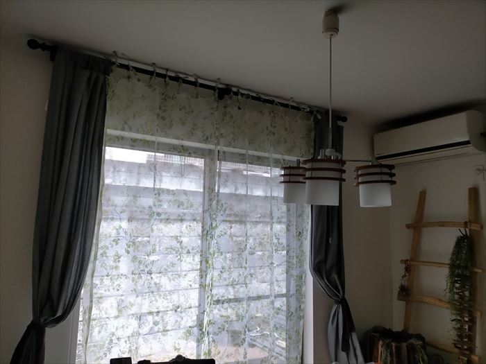 通常のカーテンとは違い上部を【リボントップ仕様】で制作させていただきました!