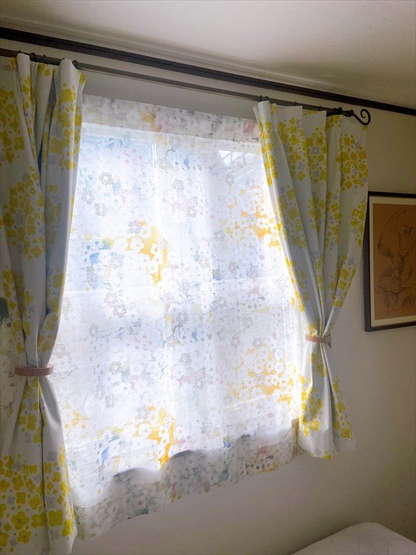 <レースレヴール>は、一面に広がるお花柄と、水彩のような鮮やかな色合いがとっても可愛いレースカーテンです!