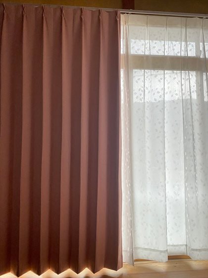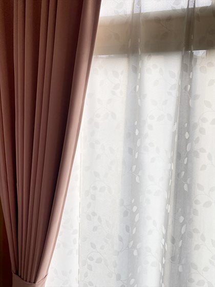 レースのカーテンのリーフ柄はとても素敵で中からは明るいのですが外からは全く見えません。遮光カーテンもしっかりした生地でダグラスピンクがとても落ち着いたピンクで外へ光も漏れず大満足です。
