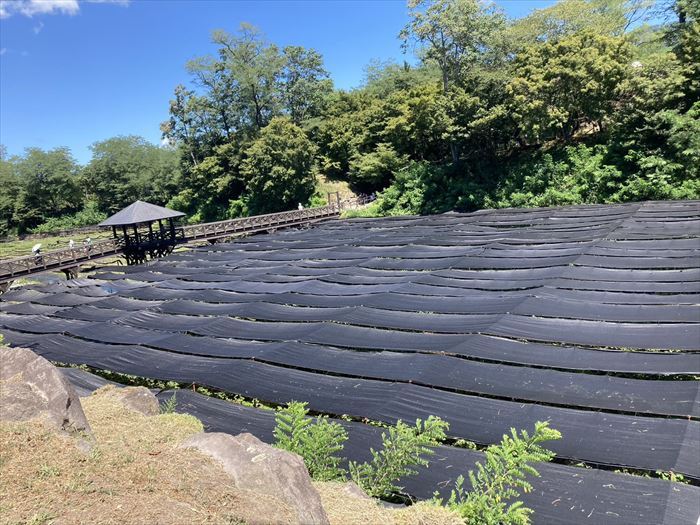 またわさびは暑さに弱いらしく真夏は寒冷紗という黒い布で直射日光を避けるのだそうです。