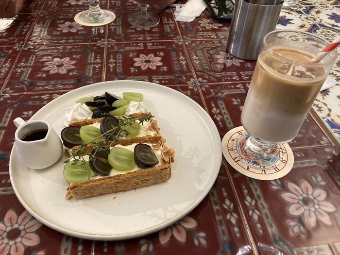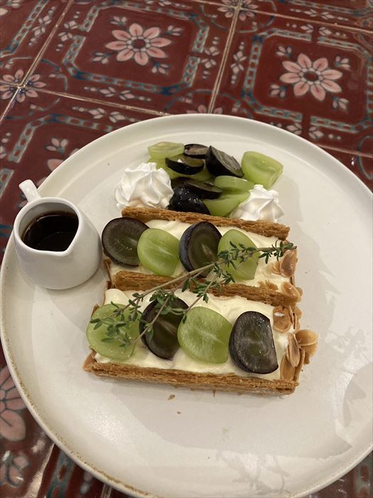 ちょうど秋期間の新メニューが出ていたので葡萄のナポレオンパイを注文!アールグレイティーのシロップもいい香りで幸せ気分倍増です◎