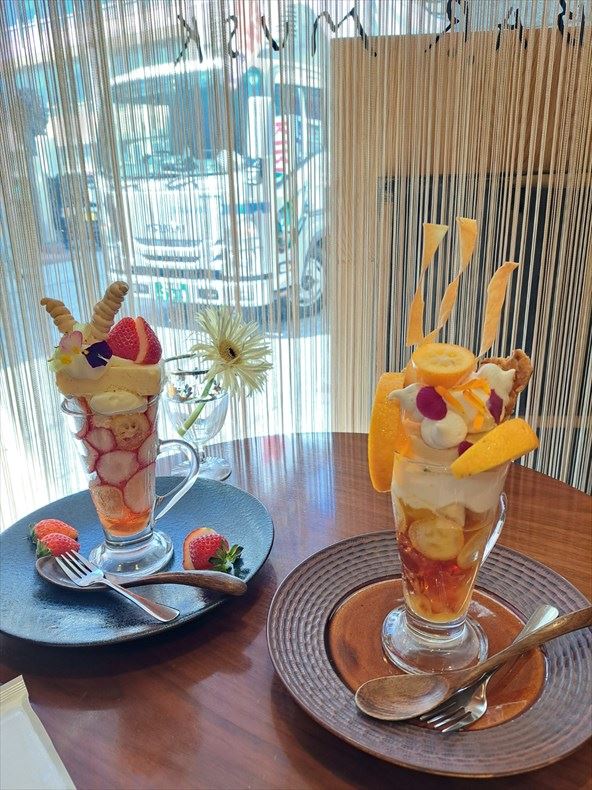 その季節の旬のフルーツを使ったパフェやかき氷が楽しめます。