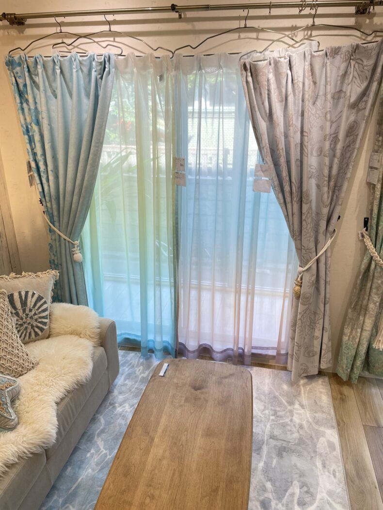びっくりカーテンのショールームでは他所のお店で出来ないカーテンのコーディネートを体験できます。
