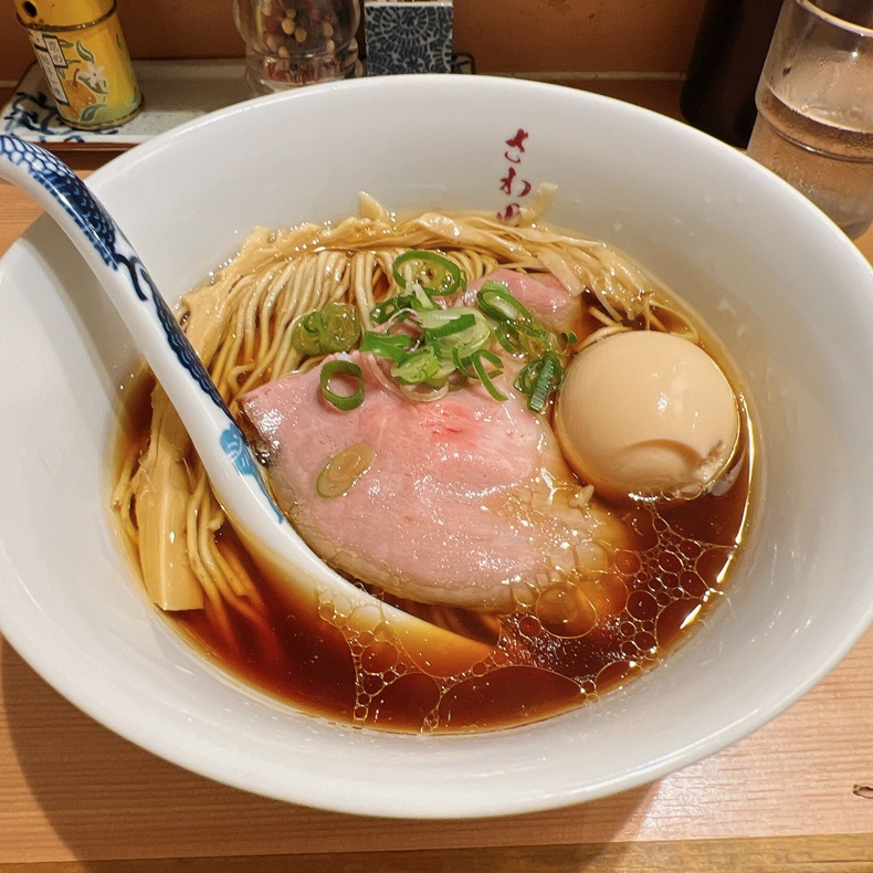 芳醇で豊かな香りが特徴の鴨と大山どりの醤油らぁ麺と、あまりお目にしない鰺煮干しを使った炭火焼鯵煮干とどちらも食べたのですが、個人的には鴨と大山どりの醤油らぁ麺がおススメです!!空いたお腹に満足感と充足感が一気に押し寄せて、美味しいの一言につきます。食後の満腹感に反して、スッキリと良い意味で後のこりしないのも何度も食べたくなる要因ですね。