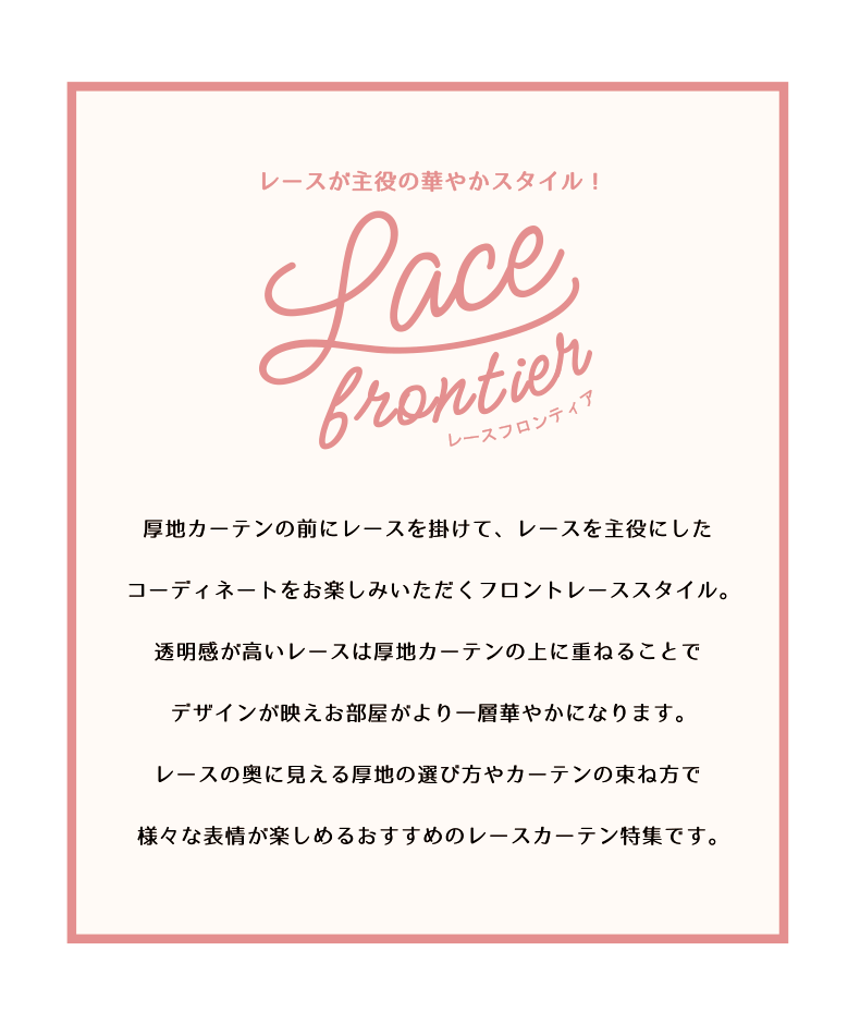Lacefrontier(レースフロンティア)シリーズは、厚地カーテンの前にレースを掛けて、