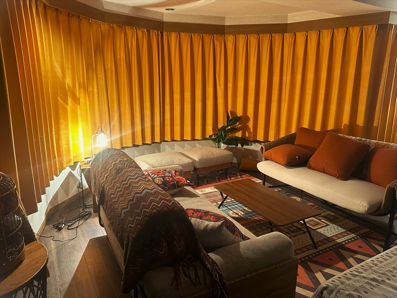 光が生地を通して入ってこない完全遮光カーテンなので、寝室はもちろん、リビングでの昼間の映画鑑賞にも最適です!