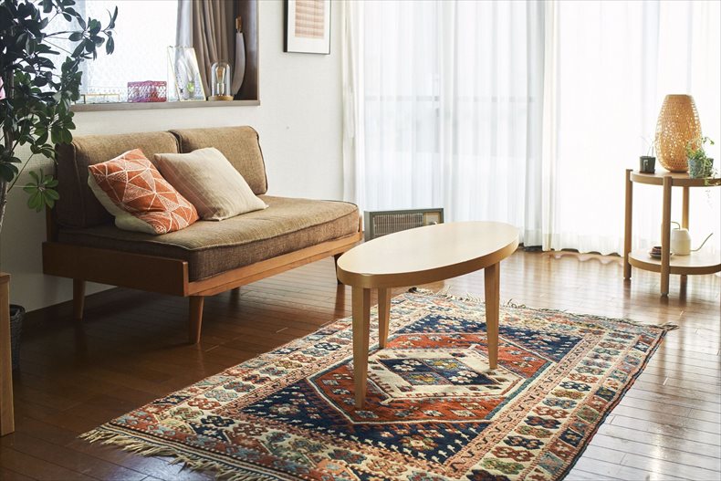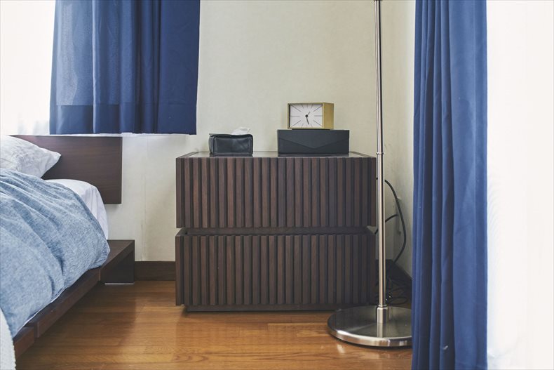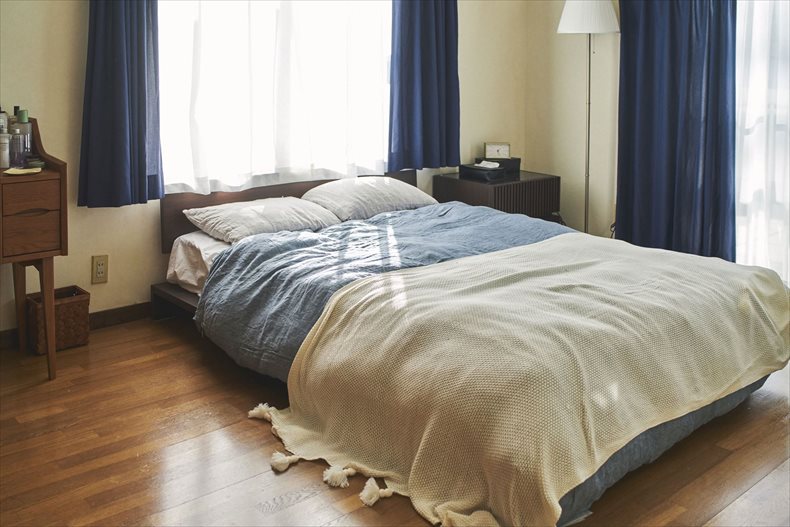 厚地はシンプルな無地の<ユーカラープレーン>を、リビングや寝室には濃い目のブラウン系家具に似合うネイビー、子供部屋は優しいアイボリーをコーディネートされています。