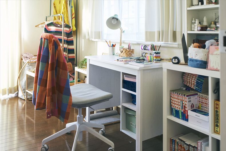女の子のお部屋という設定なので優しい白が基調。
