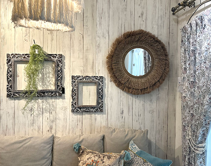 今回使用しました<ジャガラガ アンティーク>は落ち着いた大人の雰囲気になるところが嬉しいポイントです。すこしお茶目な<レースアニマルズ!>とあわせることでお互いの良さが交じり合って唯一無二の空間に仕上げてくれます。