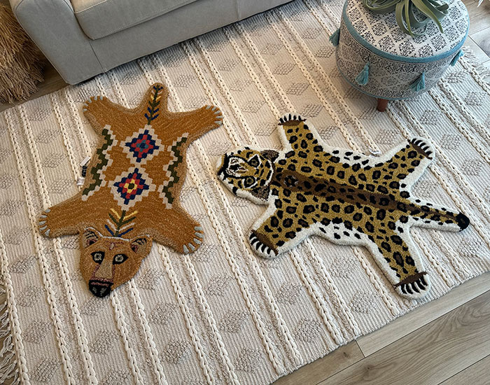 厚地:ジャガラガ アンティーク/レース:レースアニマルズ!タッセル:ルーピ アイボリー/ラグ:サラ ランバス