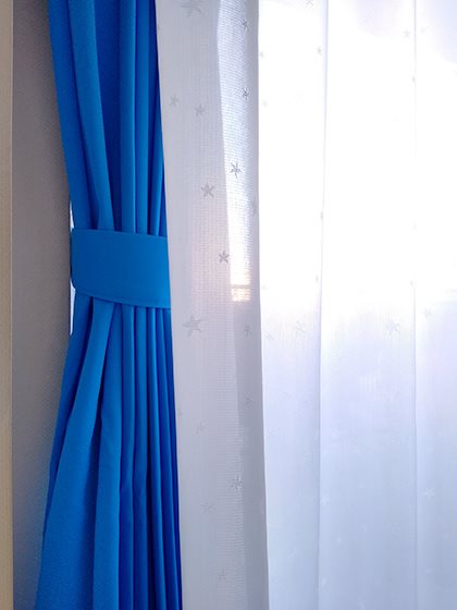 まず、フォーシーズンの遮光性は抜群です。サマースカイの鮮やかな青は、スカッとするような青です。毎朝カーテンを開ける度に明るい気持ちになります!