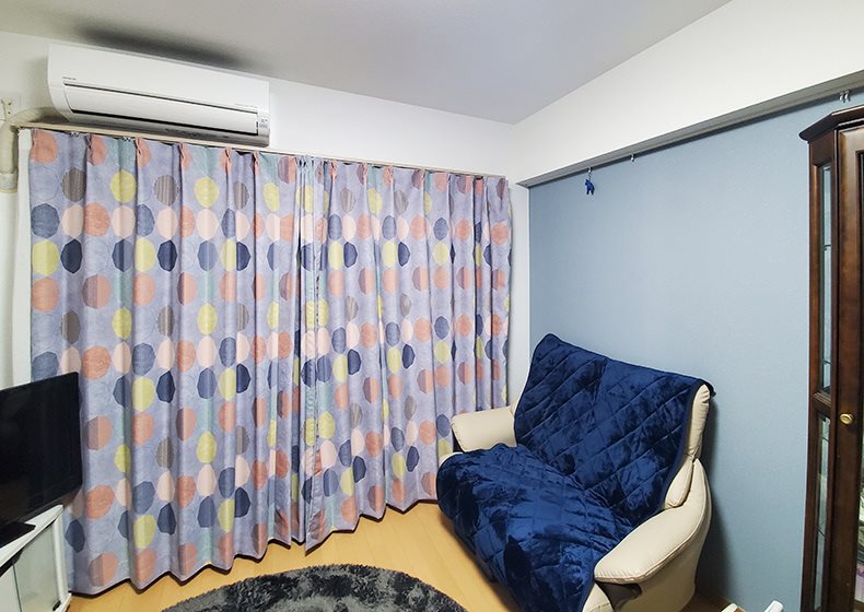 <レンミッキ ブルー>は、ナチュラルであたたかみのある北欧の暮らしをイメージしたデザインのカーテンです(*^-^*)