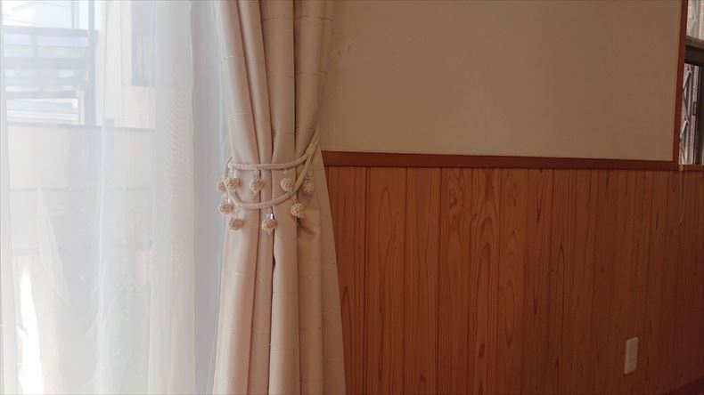 タッセルを変更するだけで、新しいカーテンに生まれ変わったみたいです。