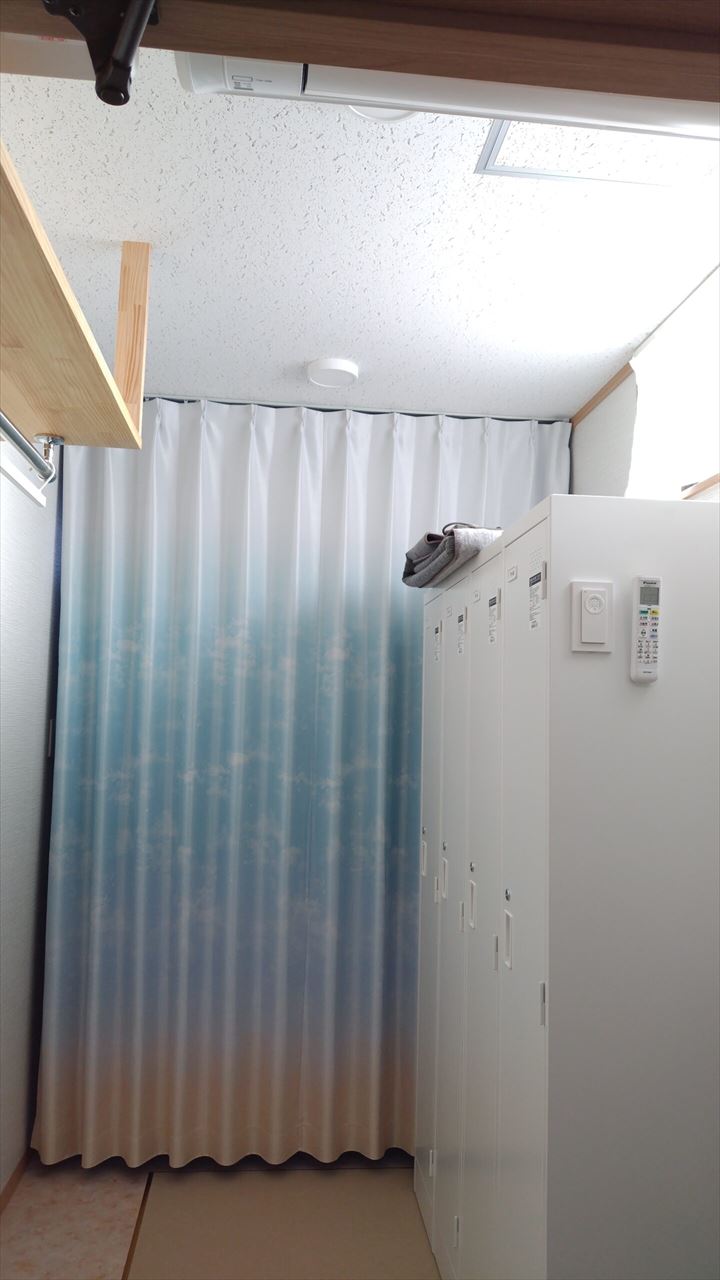 更衣室に選んで頂いた<ソラノイロ>は当店でも大人気のカーテンです♪