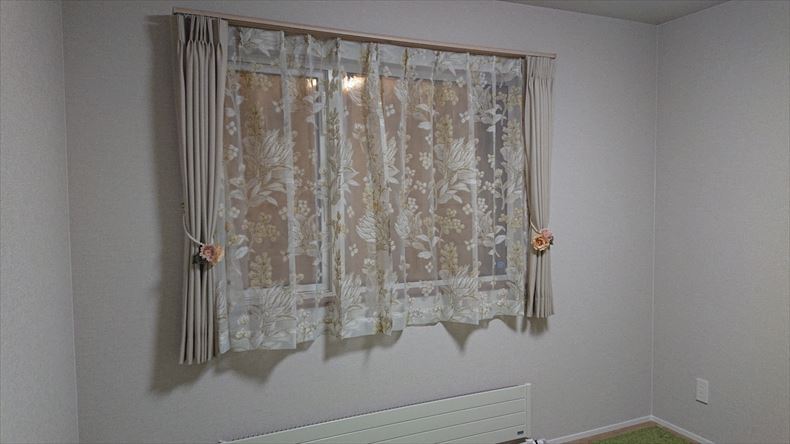 また、洋室にも設置したレースカーテンも、自分で言うのも恥ずかしいですが、