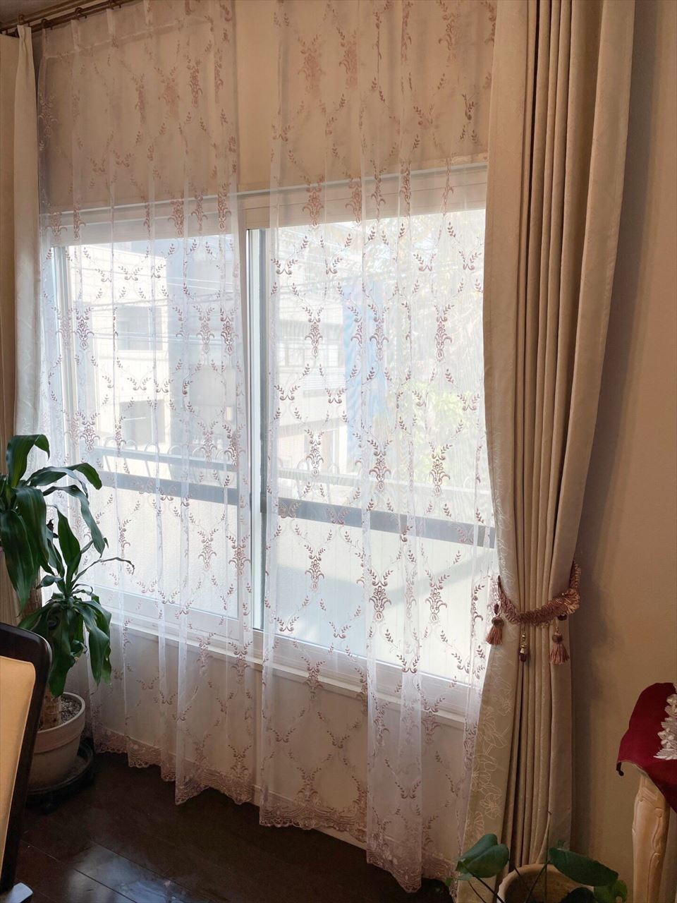 裾のスカラップまで豪華なレースで、私も大好きなレースカーテンです。
