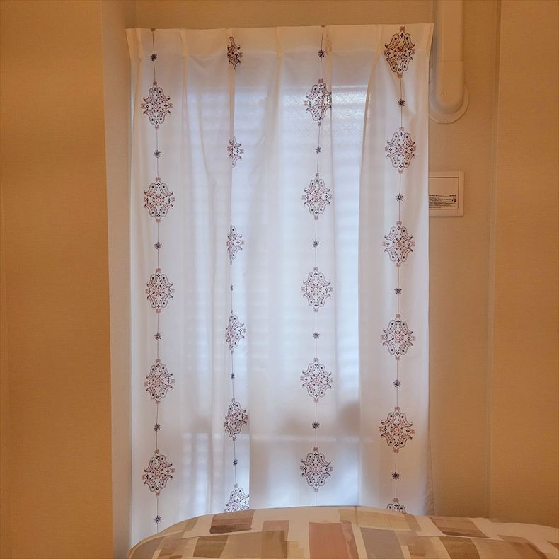 デザインレースのカーテンで一気に華やかになりました。明るさを取り入れつつ、遮像の機能も備わっているの