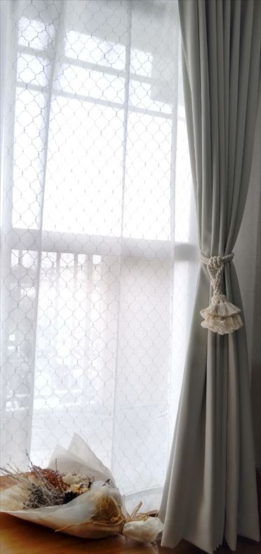 シンプルなカーテンとデザイン性があるレースカーテンを組み合わせていただいて、