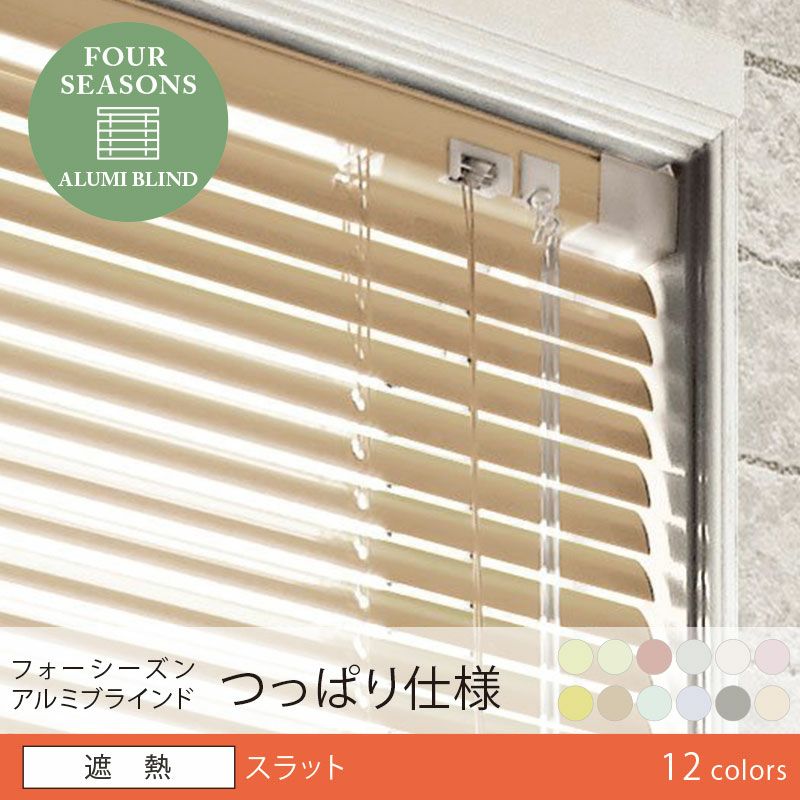 送料込★日本製でコスパ抜群!12色から選べてお買い得なアルミブラインド<フォーシーズンNeo つっぱり仕様【遮熱】スラット>※代引不可
