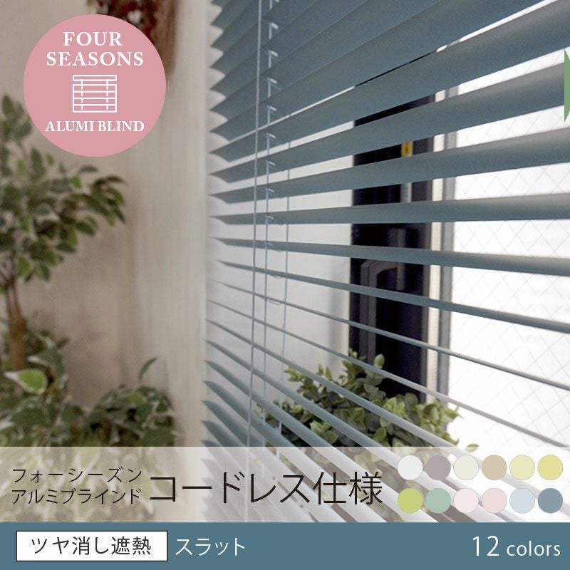 4. 送料込★日本製でコスパ抜群!12色から選べてお買い得なアルミブラインド<フォーシーズンNeo コードレス仕様【ツヤ消し遮熱】スラット>※代引不可