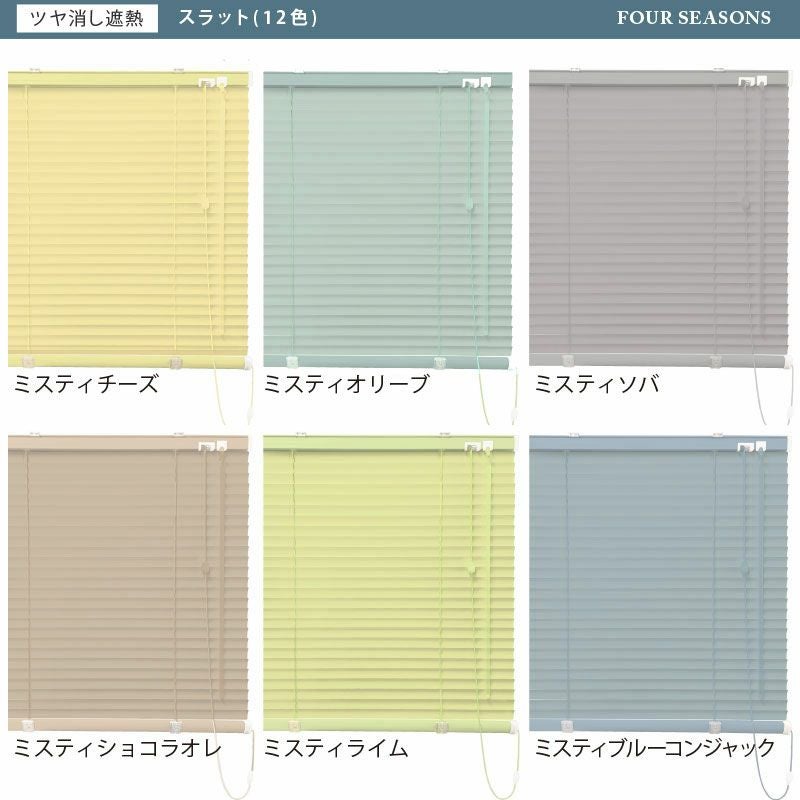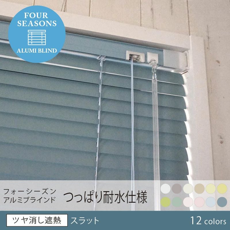送料込★日本製でコスパ抜群!ビス穴あけ不要。サビに強い12色のアルミブラインド<フォーシーズンNeo つっぱり耐水仕様【ツヤ消し遮熱】スラット>※代引不可