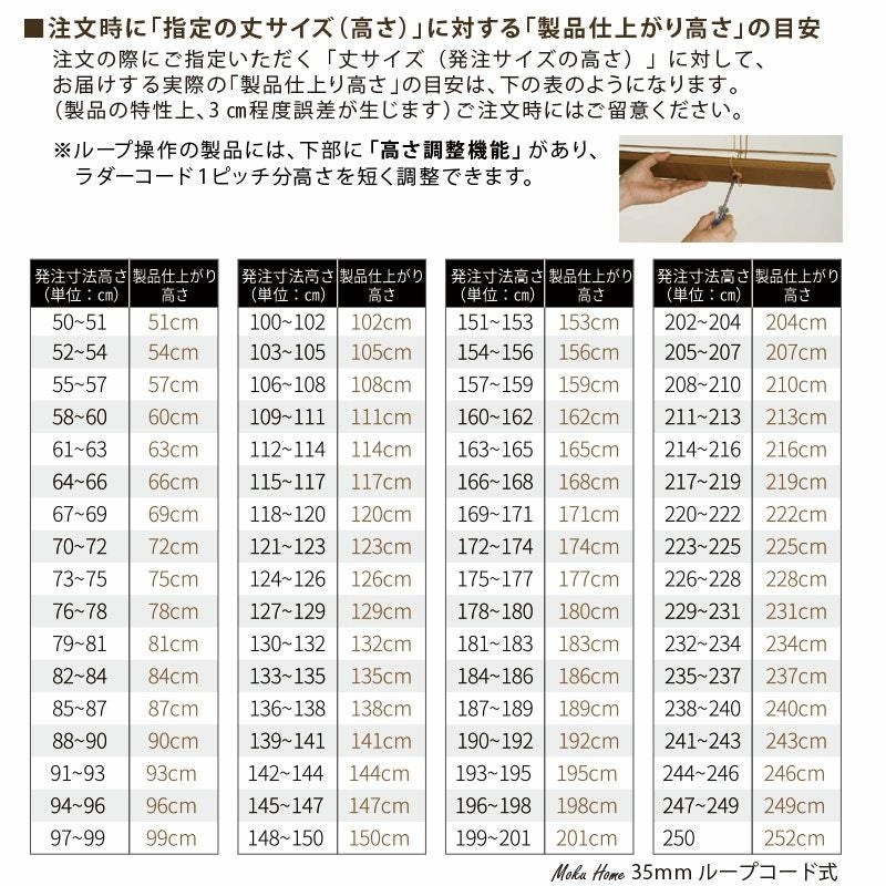 1cm単位でご指定いただけますが、製品の特性上生じる誤差となりますので、予めご了承ください。