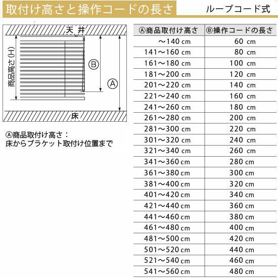 取付け高さの指定がない場合、製品丈(高さ)により操作コードの長さが決まります。