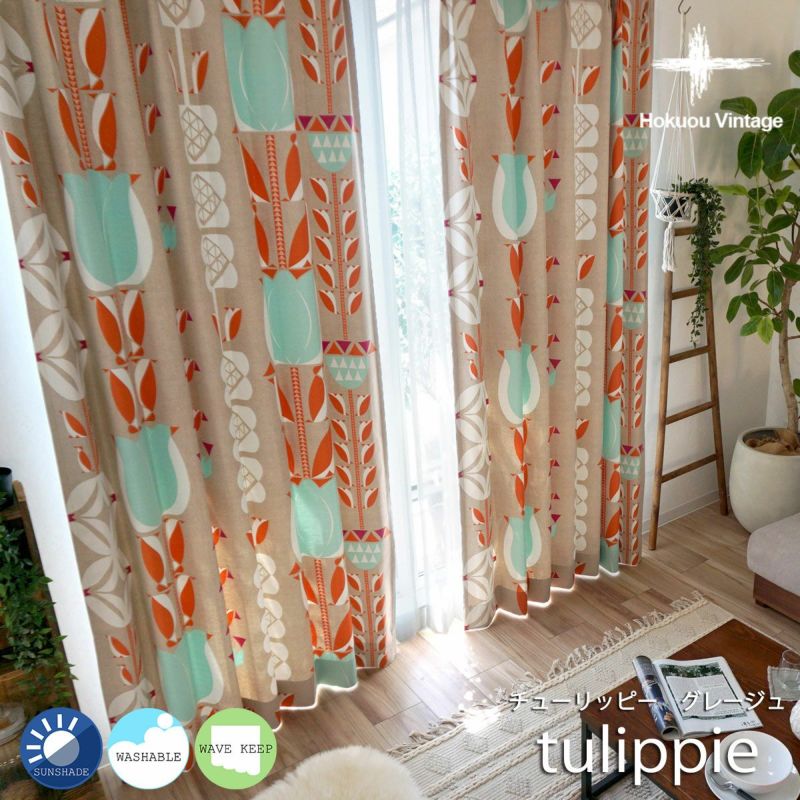 【北欧VINTAGE】3級遮光・形状記憶付きカーテン <tulippie - チューリッピー グレージュ>