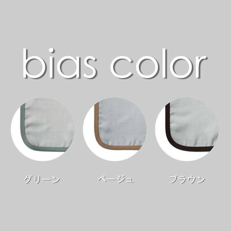 バイアステープでぐるっと囲うことでカーテンの裾と左右の折り返しをなくし、