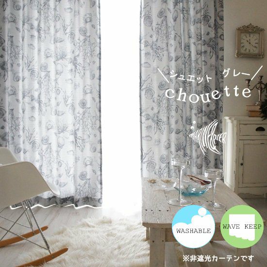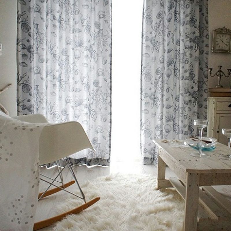 海の中のイメージをデザインしたカーテンなので、やわらかく動きのあるデザインになっています。お部屋の中でも、リゾートテイストでリラックスしてくつろげるような、優しいデザインです。また、遮光カーテンではありませんので、程よく光が入るのがまたキレイです!スタッフも一押しのシャビーテイストカーテンです。