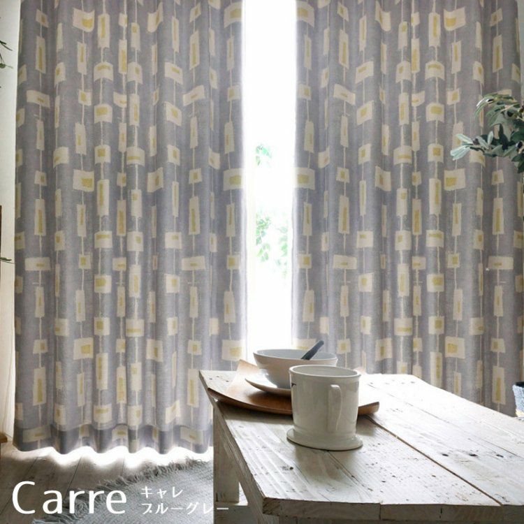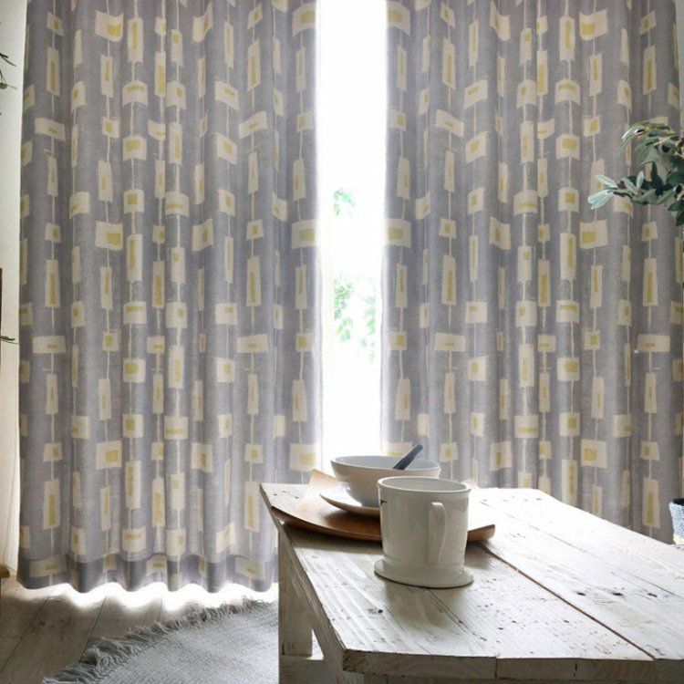 <北欧調>2級遮光・幾何学模様のおしゃれなデザイン<Carre - キャレ イエロー>