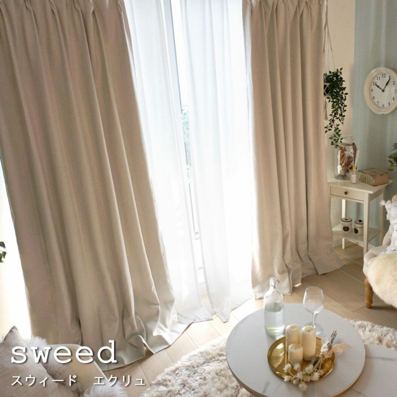 3. 防炎機能付き!スウェード調のスタイリッシュな無地カーテン<スウィード エクリュ>