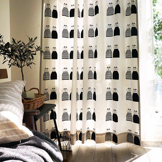 スウェーデンの陶芸家リサ・ラーソンのデザインをカーテンにしました。世界中で人気を得ている動物シリーズ。