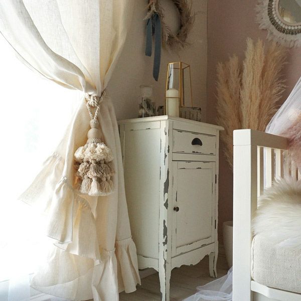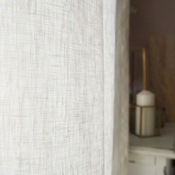 リネン100%の生地にフリルをあしらったフェミニンでナチュラル感いっぱいのカーテンです。
