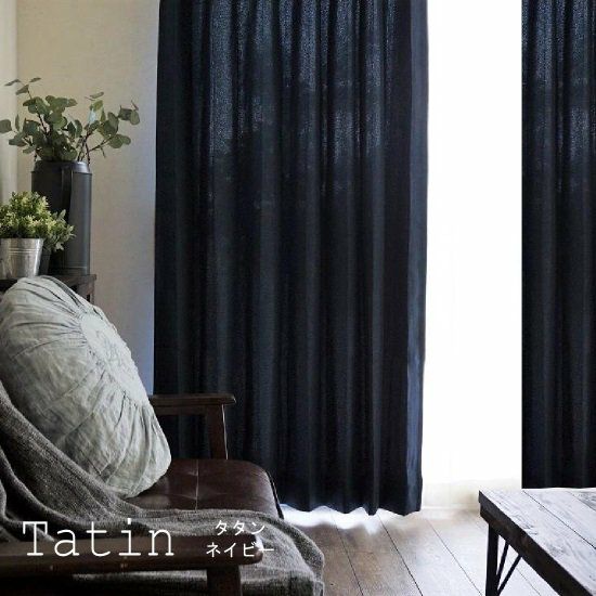 【無地カーテン】 ざっくりした風合いの遮光カーテン<Tatin タタン ネイビー>